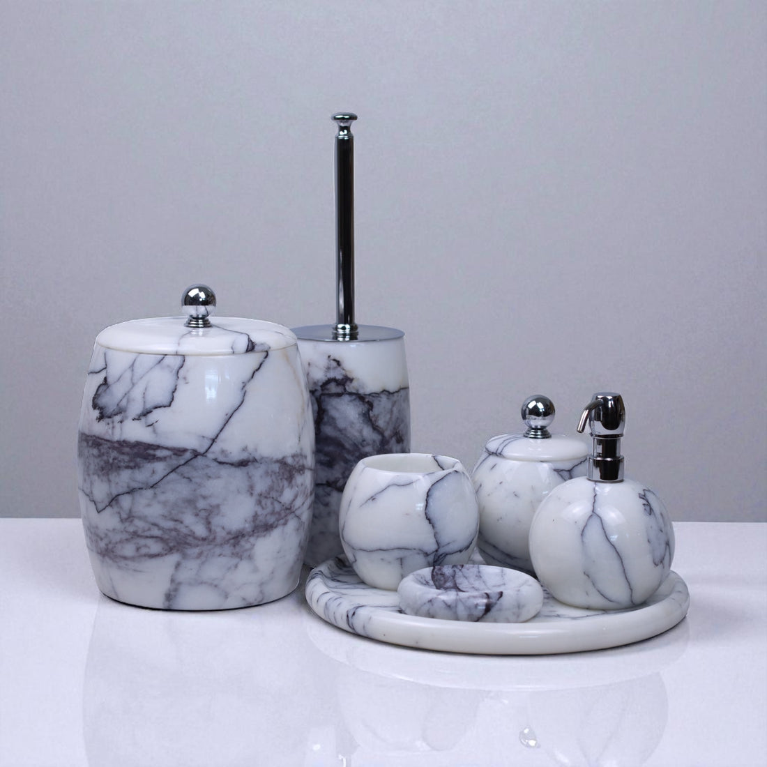 Aurora – 5-teiliges Badset aus weissem Marmor