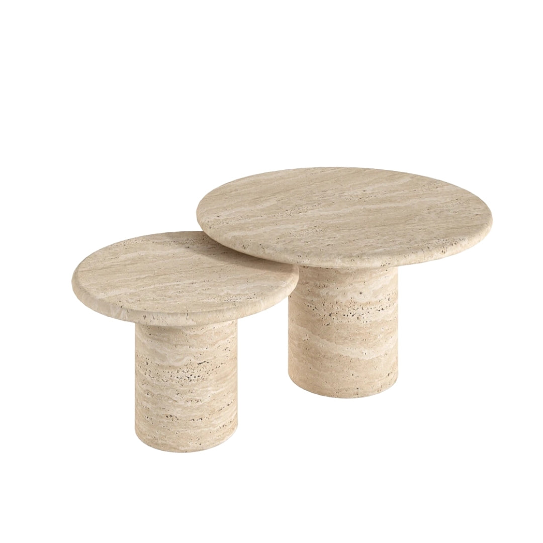 Tisch1: Durchmesser: 80 cm Höhe: 44 cm Tisch2: Durchmesser: 60 cm Höhe: 35 cm Plattendicke:...