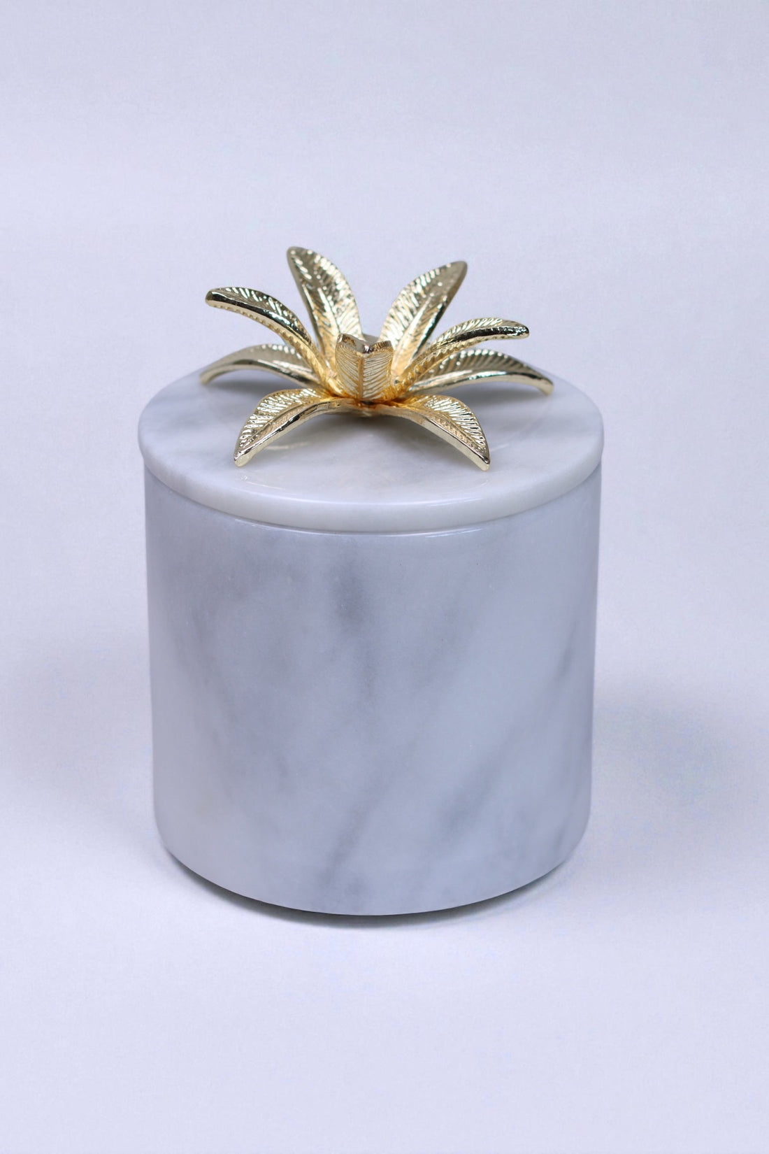 Luxuriöse Marmordose Flora – Weisser Marmor mit Golddeckel