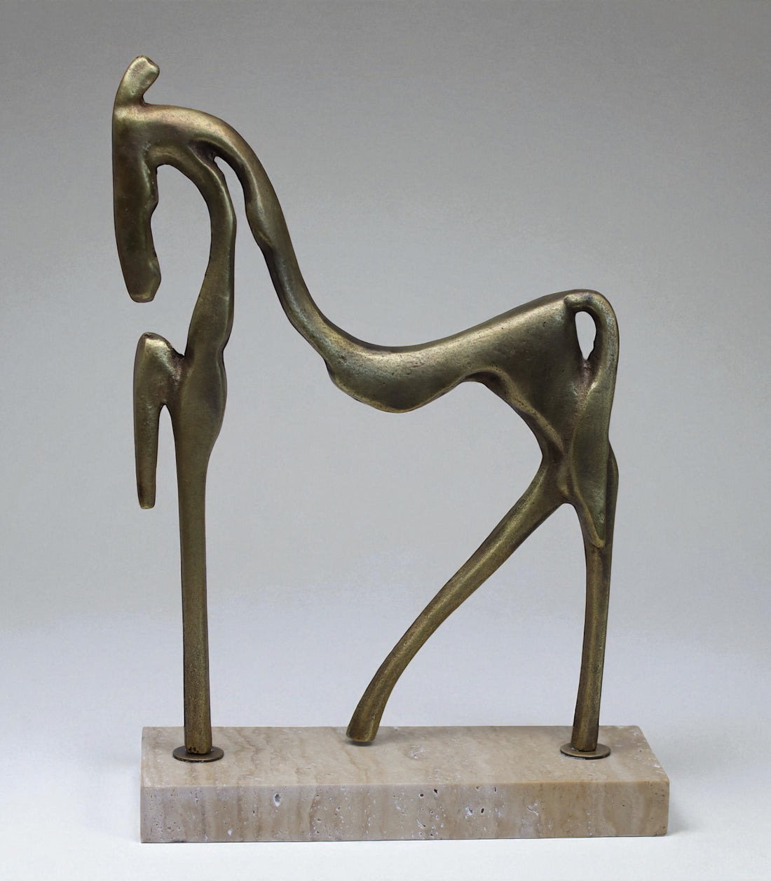 Linea Cavallo – Abstrakte Pferdeskulptur aus Bronze & Travertin