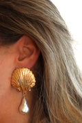 • Vergoldeten Muschel-Ohrringen mit tropfenförmigen Kunstperlen – ein stilvoller Hingucker inspiriert von der Unterwasserwelt.