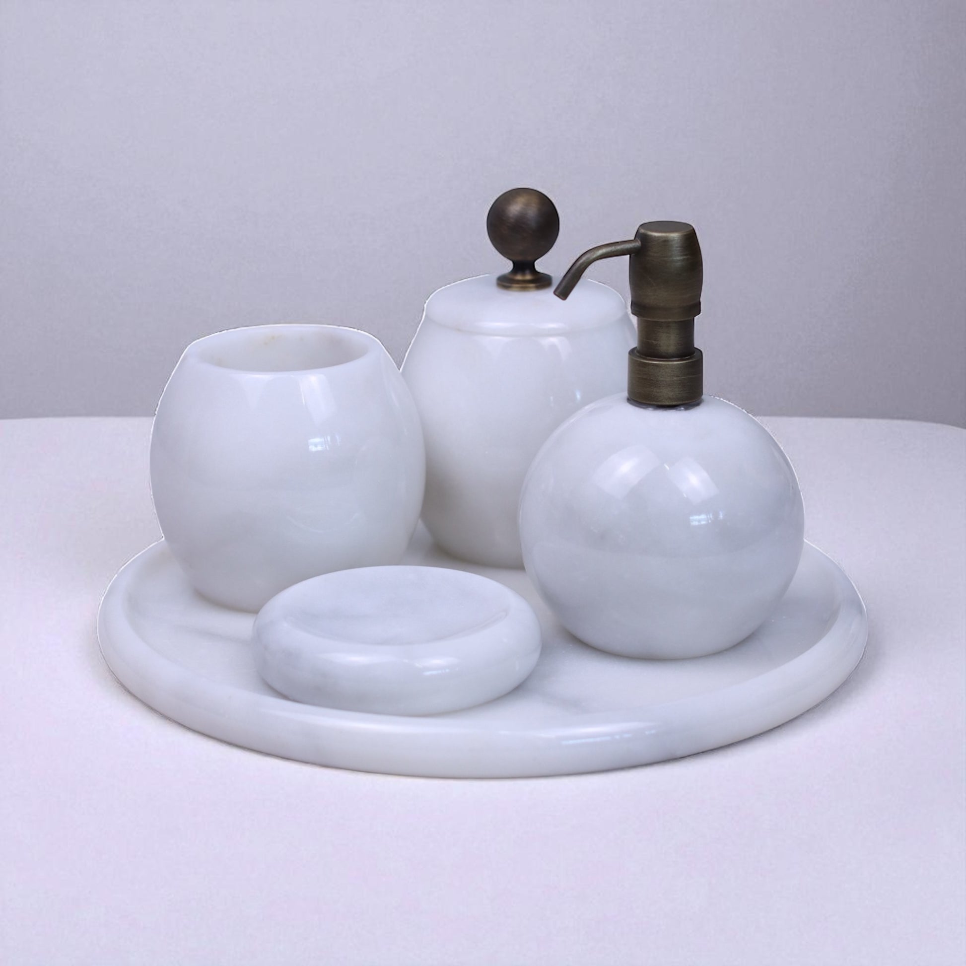 Aurora – 5-teiliges Badset aus weissem Marmor