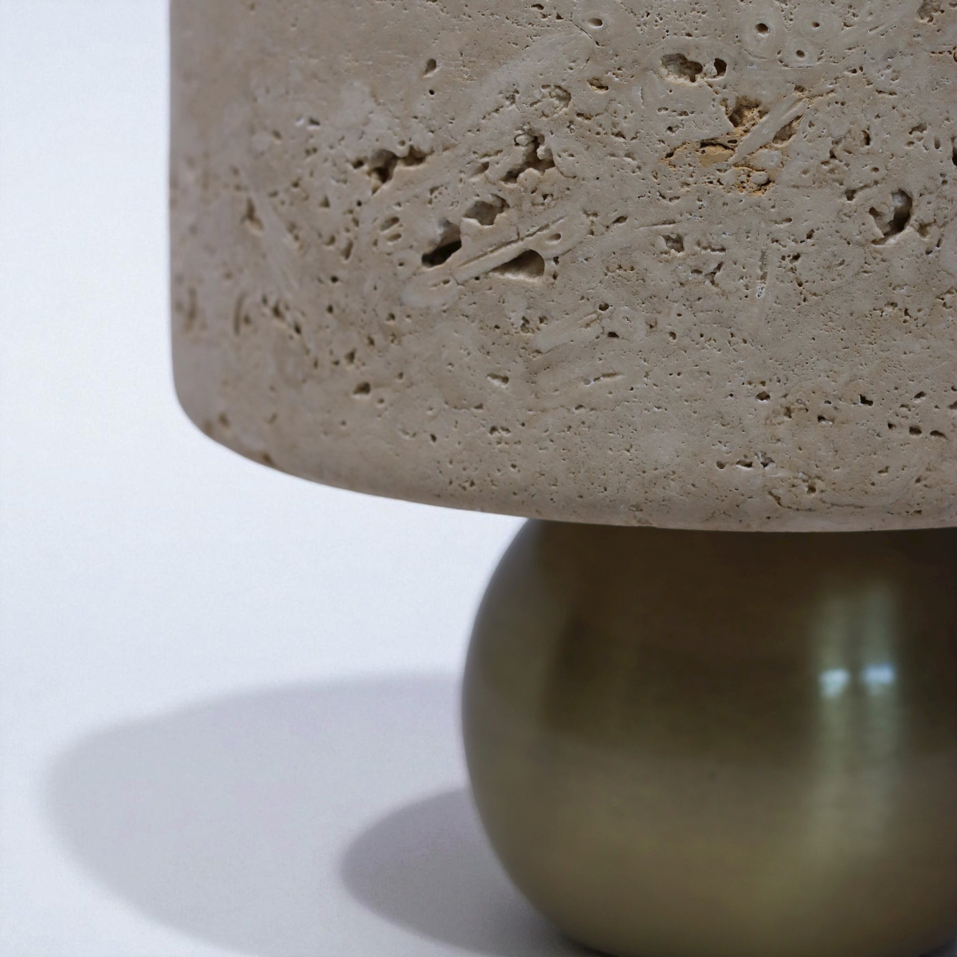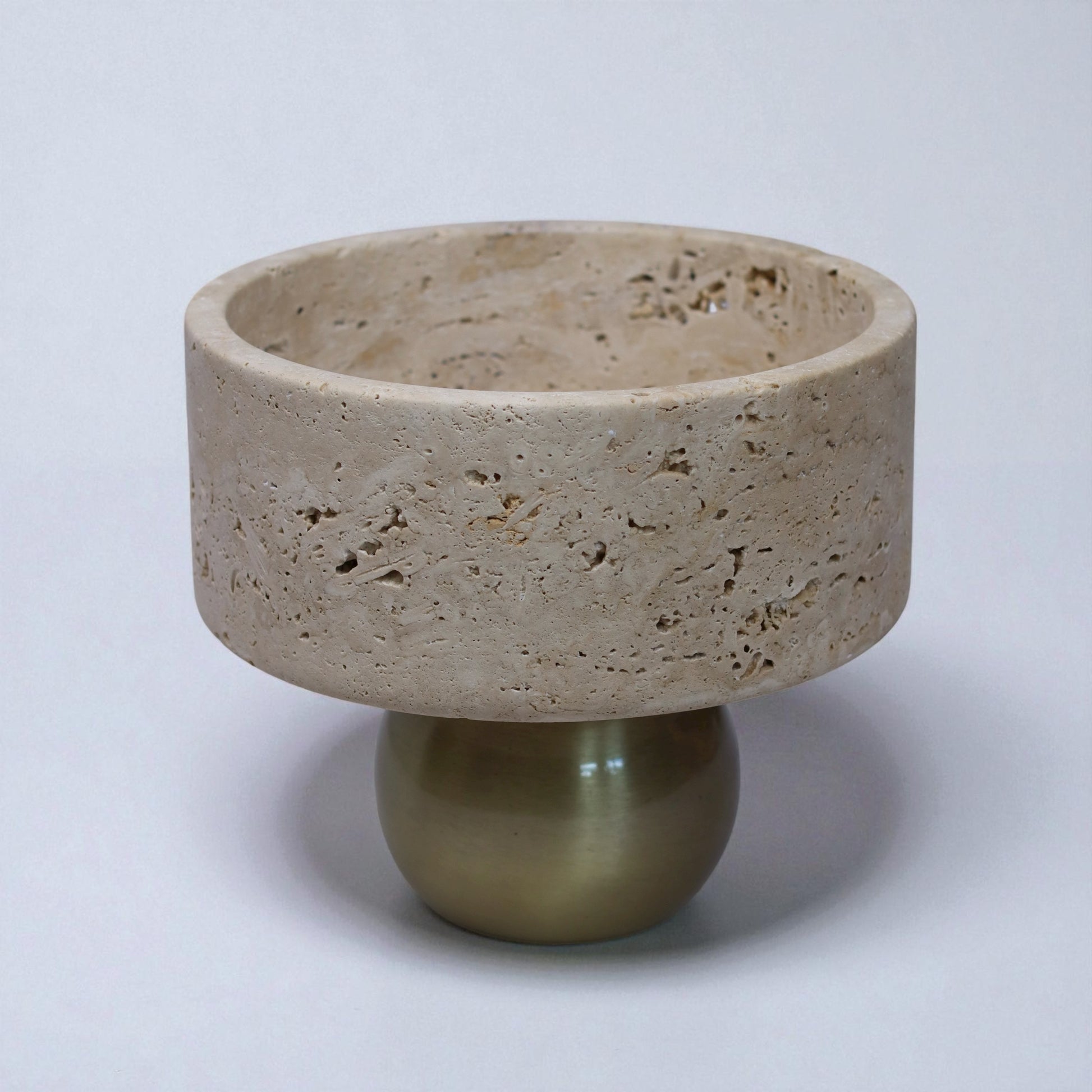 Die Schale Aurum Terra kombiniert die rohe Natürlichkeit von Travertin mit der edlen Anmutung eines gebürsteten Metallfusses. Der Kontrast zwischen dem warmen, porösen Stein und dem glatten, goldfarbenen Sockel verleiht diesem Objekt eine moderne Eleganz mit archaischem Charakter. Als Statement-Piece oder funktionale Schale bringt Aurum Terra stilvolle Erdverbundenheit in jede Umgebung.