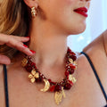 Boho Spirit Schmuckset - Rote Kordellkette und Gold Charms
