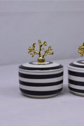 Eleganz trifft maritimes Design: Das „Coral Charm“ Set besteht aus drei stilvollen Keramikdosen, die durch ihren auffälligen Deckelgriff in Form einer vergoldeten Koralle zu etwas ganz Besonderem werden. Die organische Form der Koralle verleiht den Dosen einen künstlerischen Charakter – inspiriert vom Meer, gefertigt für moderne Wohnräume.