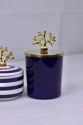 Die klare, zylindrische Form der Gefäße betont das Spiel zwischen glänzender Oberfläche und dem organisch geformten Griff. Ideal als dekoratives Element auf Kommoden, Sideboards oder im Badezimmer – zum Aufbewahren kleiner Gegenstände oder einfach als Statement-Piece.