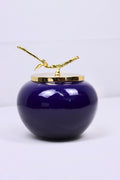 Ein Hauch von Luxus für dein Zuhause – die „Golden Harmony“ Keramikdose verbindet minimalistisches Design mit opulenten Akzenten. Die runde Form mit hochglänzender Oberfläche wird gekrönt von einem kunstvoll gearbeiteten Deckel aus Metall, veredelt mit einem vergoldeten Zweiggriff.