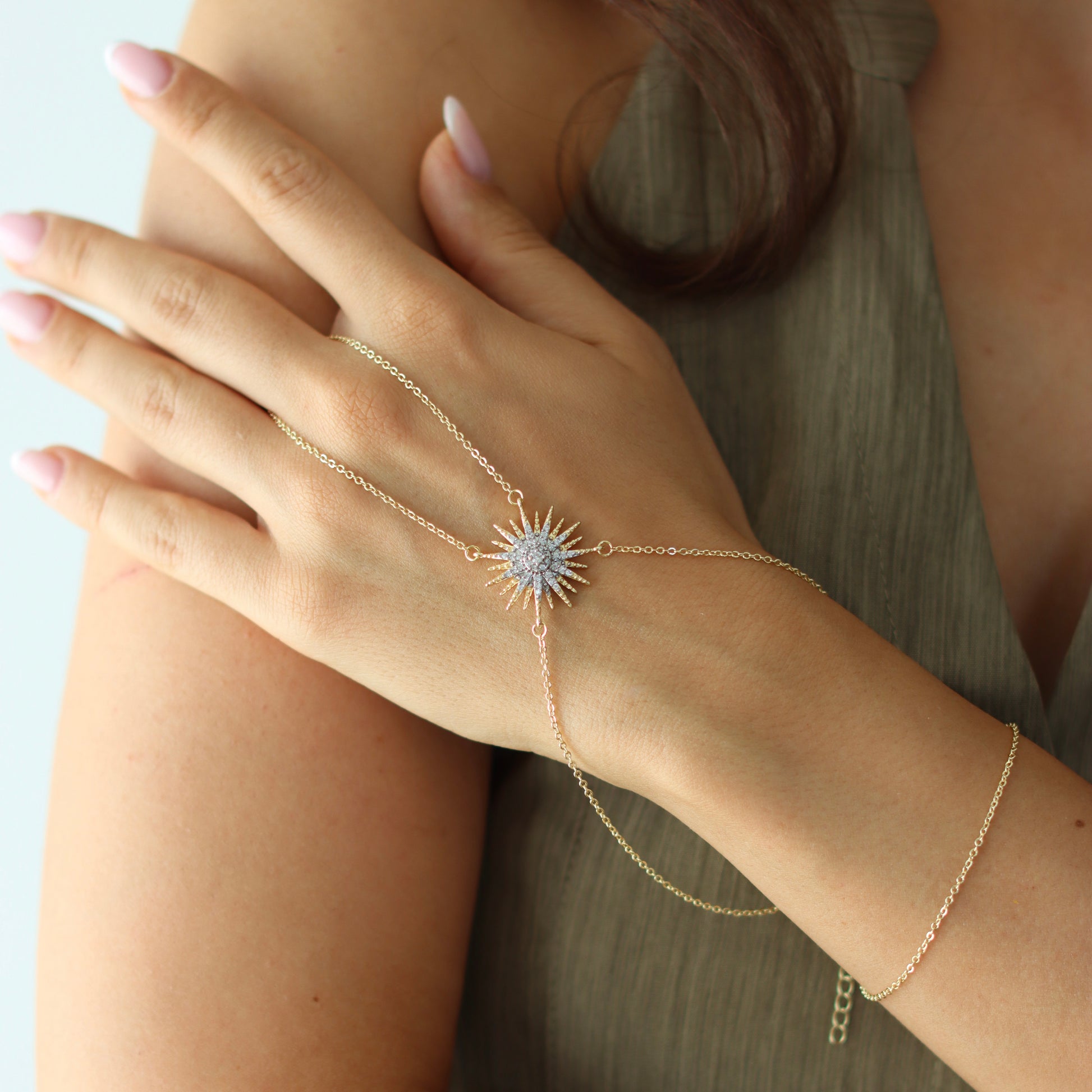 Handkette Damen – Sonnenmotiv mit Zirkonia