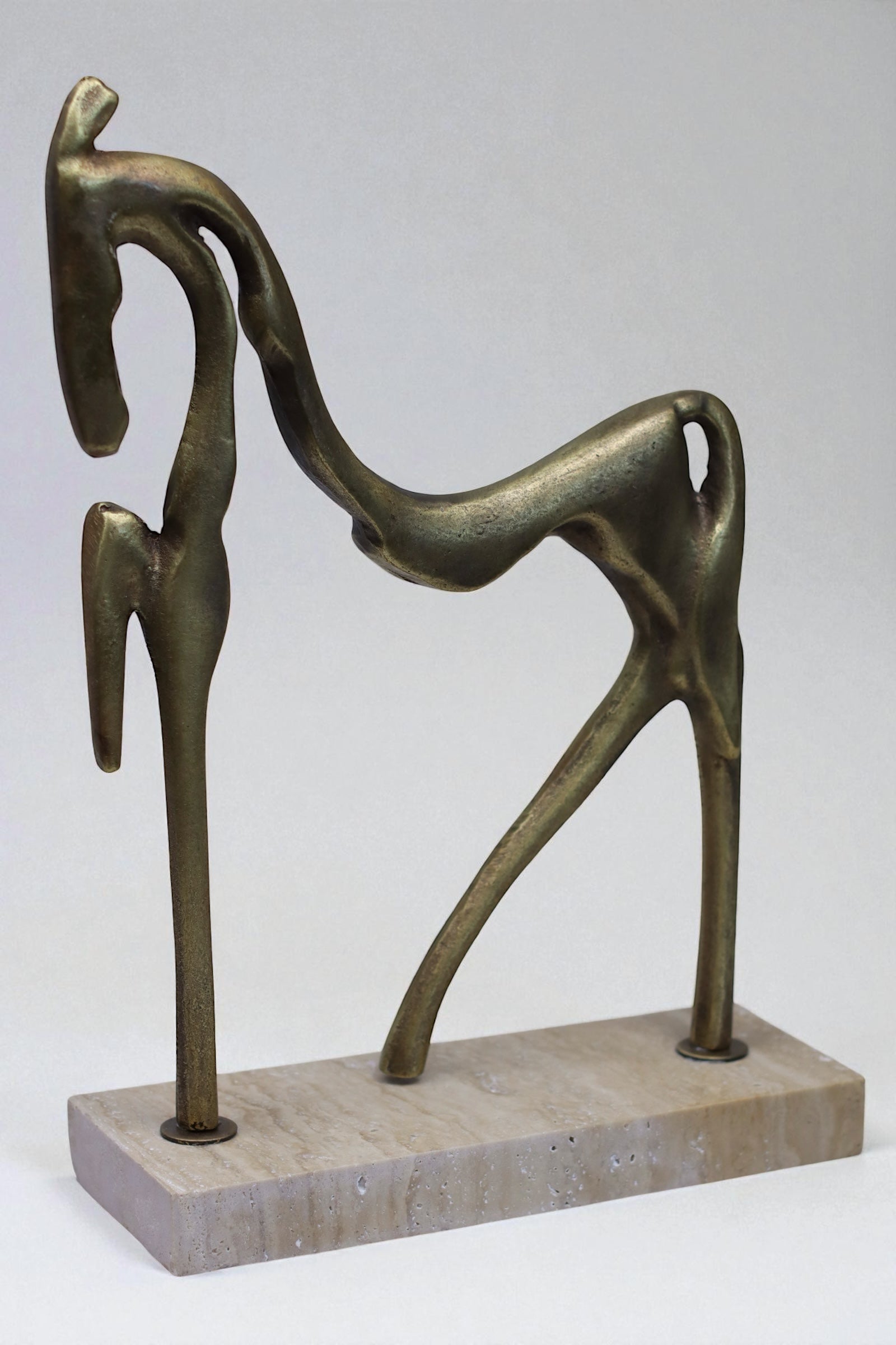 Linea Cavallo – Abstrakte Pferdeskulptur aus Bronze & Travertin