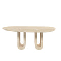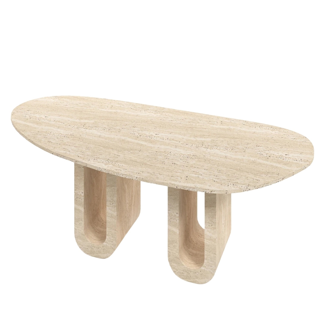 Der Livorno Esstisch beeindruckt mit seiner einzigartigen und architektonischen Form. Die geschwungenen Beine verleihen ihm eine raffinierte Leichtigkeit, während die ovale Tischplatte für eine harmonische Eleganz sorgt.