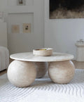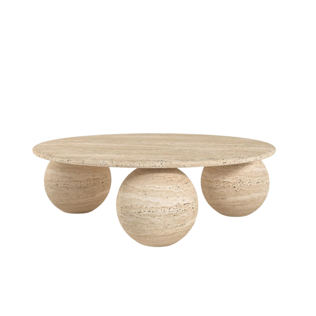 Luna Couchtisch - Eleganz in Stein. Unser Luna Couchtisch besticht durch seine sanften kugelförmigen Beine, die ihm eine skulptrale und organische Ästhetik verleihen.