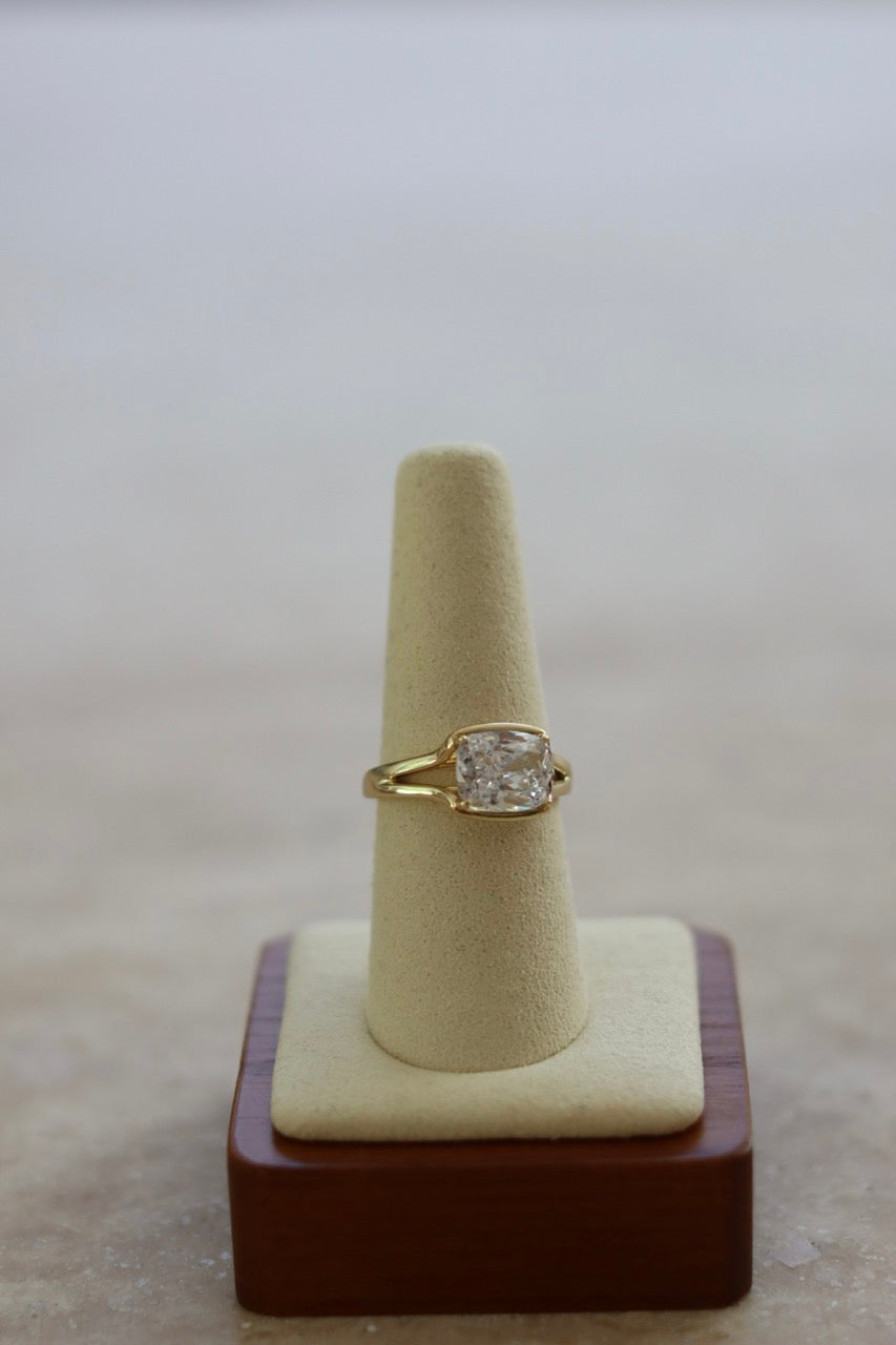 Der Luna Glow Ring ist ein moderner Klassiker mit luxuriösem Touch. Der große, facettierte Zirkonia-Stein im Kissenschliff wird von einer offenen, minimalistischen Fassung gehalten – das Highlight des Designs. Durch den goldfarbenen Edelstahl erhält der Ring eine warme, zeitlose Eleganz.