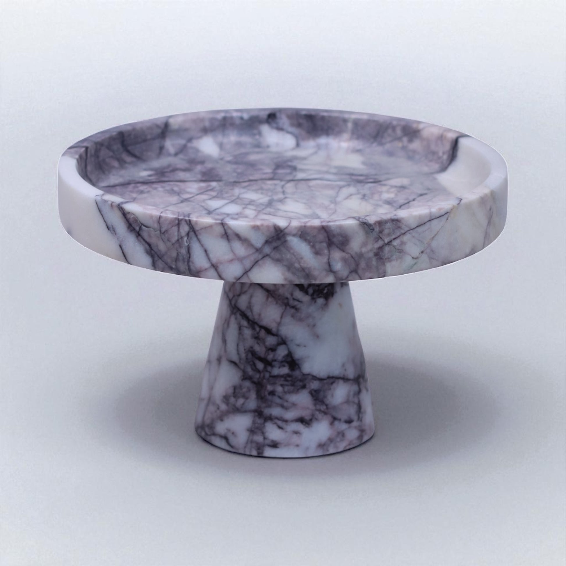Setze deine Köstlichkeiten stilvoll in Szene mit dem Marmor-Tortenständer „Violett Elegance“. Dieses exklusive Stück wird aus hochwertigem weissem Naturmarmor mit einzigartigen violetten Adern gefertigt und macht jeden Tisch zum Blickfang.