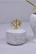 • Material: Keramik, Griffe & Deckel aus Metall (gold- oder silberverchromt)