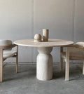 Der Nilo Esstisch überzeugt mit seiner klaren und modernen Ästhetik. die fein runde Tischplatte ruht auf einem sanft abgerundeten sockel, der dem Design eine harmonische balance verleiht. Ein stilvolles Möbelstück, das sowohl zeitlos als auch markant wirkt.