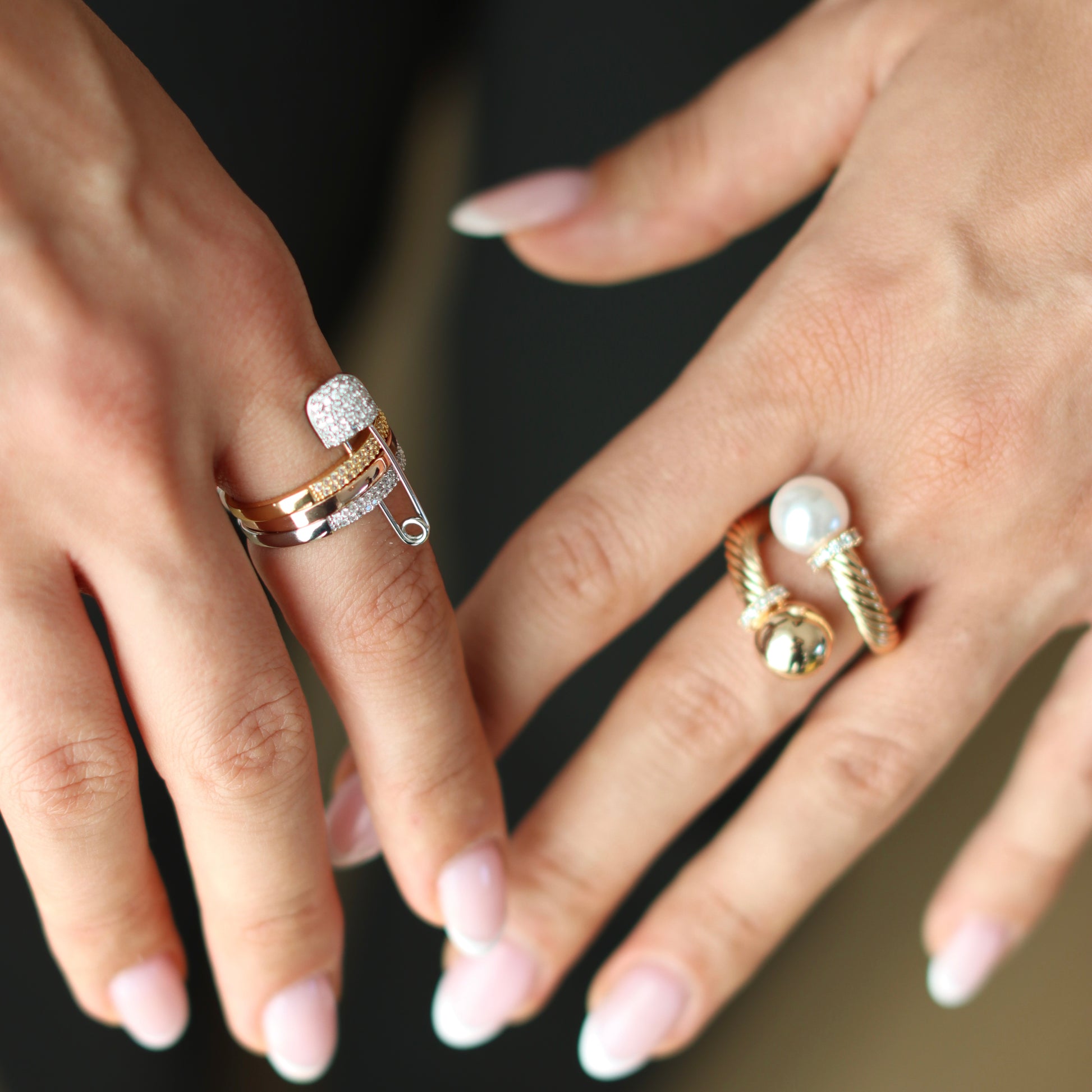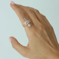 Ausdrucksstarker Damenring im Sicherheitsnadel Design mit Zirkonia Besatz. Modern, auffällig und ideal für besondere Looks.