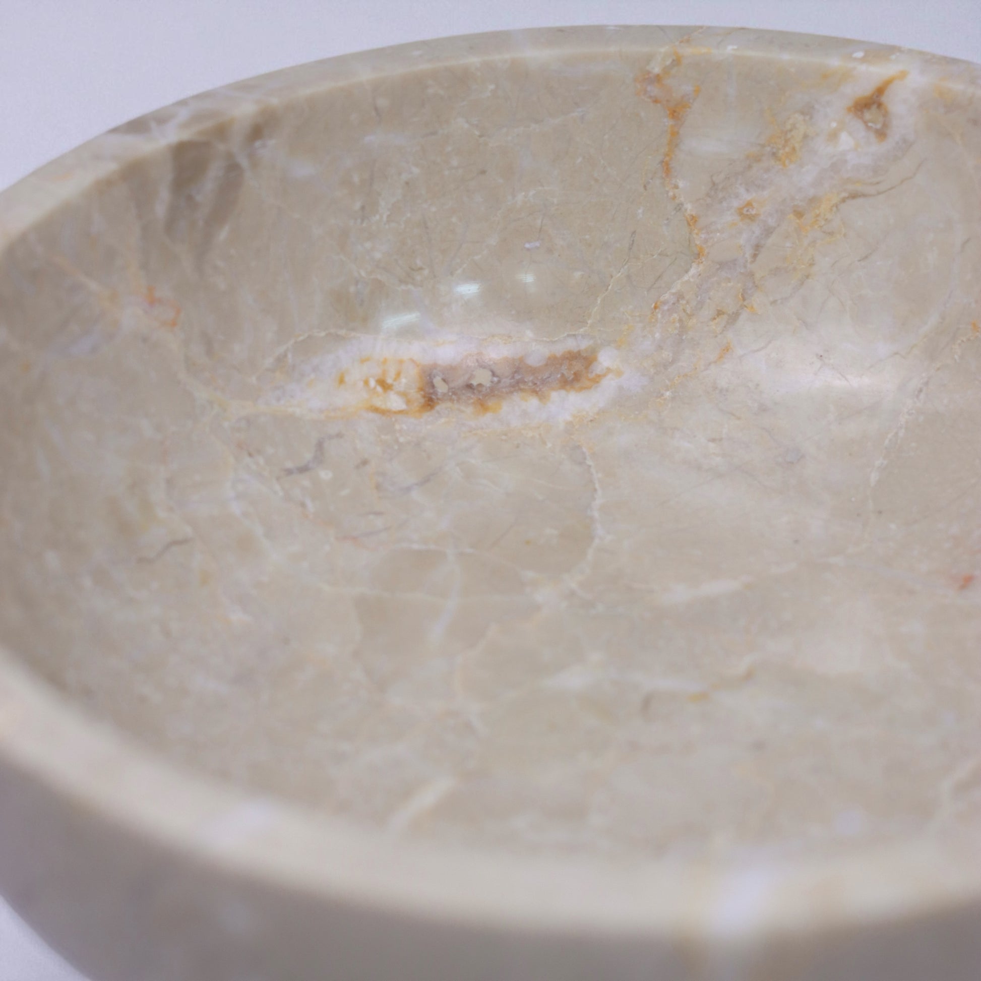 Die Schale Solon Aurea ist die elegante Marmorvariante der bekannten Solon-Form. Gefertigt aus feinadrigem, beigefarbenem Marmor, bringt sie eine luxuriöse Strahlkraft in den Raum. Ihre polierte Oberfläche reflektiert das Licht dezent und betont die natürlichen Maserungen des Steins. Solon Aurea ist ideal für alle, die klassische Ästhetik mit skulpturaler Präsenz verbinden möchten – ein zeitloses Objekt mit moderner Zurückhaltung.