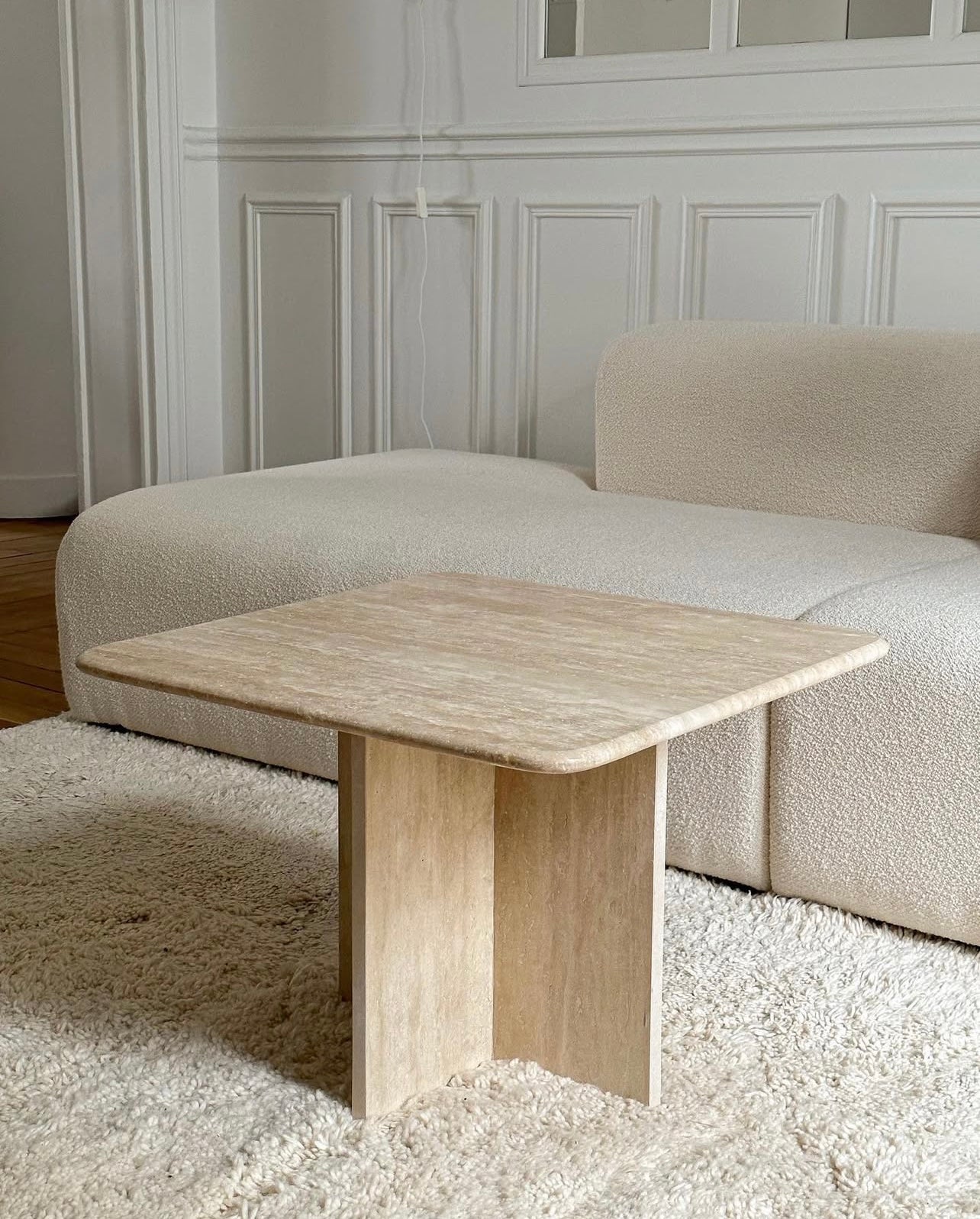 Der Couchtisch “Tavo” überzeugt durch seine schlichte Form und die warme Ausstrahlung des natürlichen Travertins. Mit seiner quadratischen Platte und dem gekreuzten Sockel bringt Tavo Ruhe, Struktur und Eleganz in moderne Wohnräume.