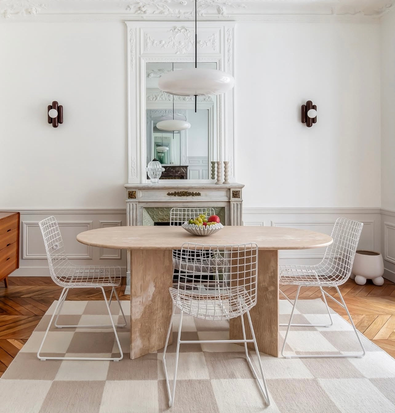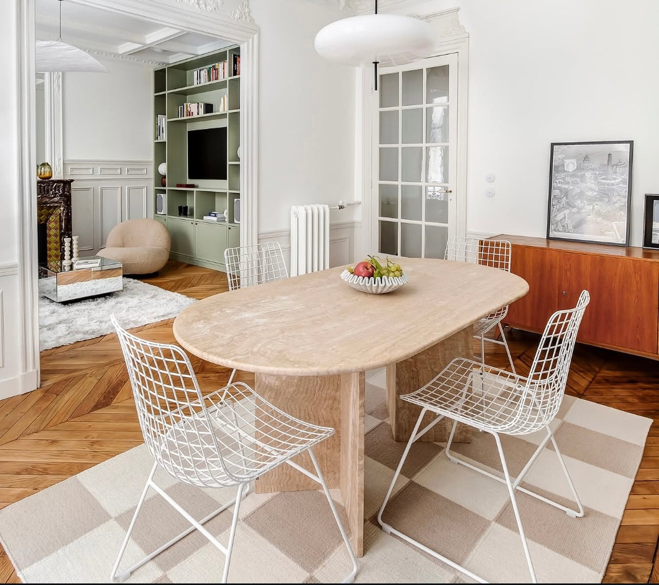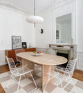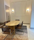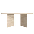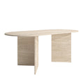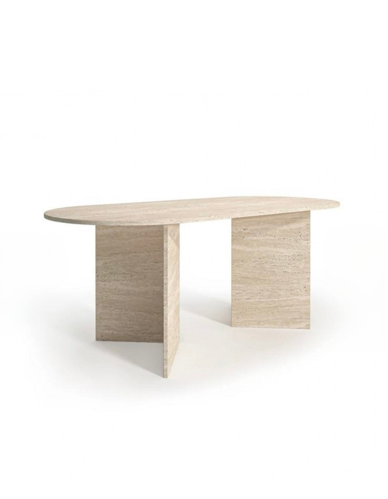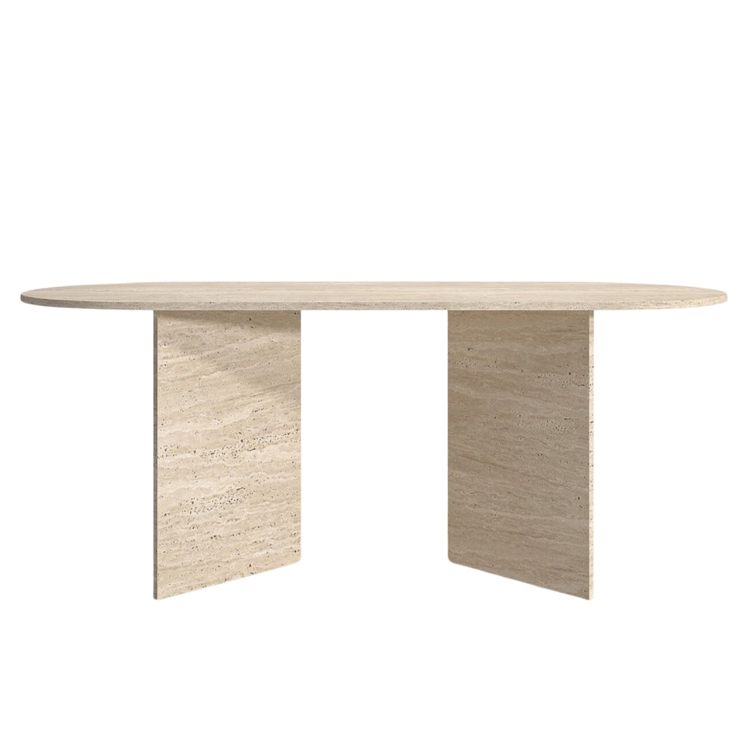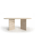 Der Torino Esstisch verkörpert pure Eleganz durch sein minimalistisches Design. Die klaren, geometrischen Linien der massiven Travertin-Beine verleihen ihm eine markante Präsenz, während die ovale Platte für eine sanfte, harmonische Ästhetik sorgt.